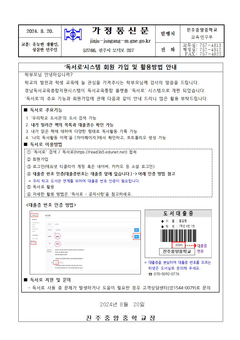 독서로 이용안내 가정통신문.hwp