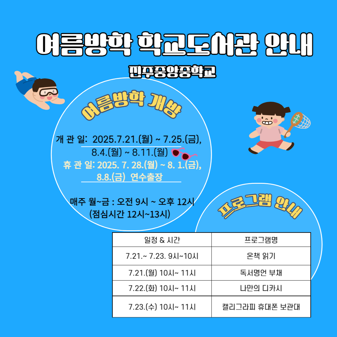 2025학년도 여름방학 학교도서관 운영을 안내합니다.
